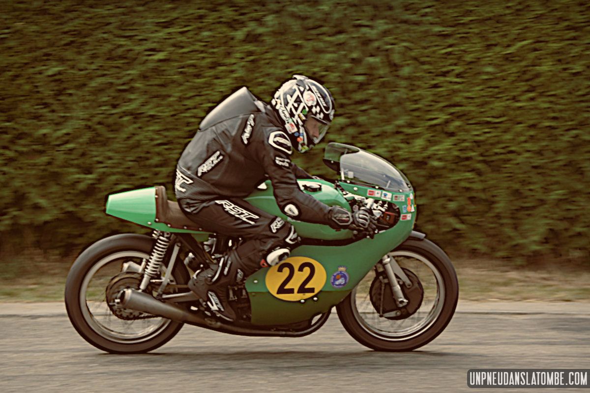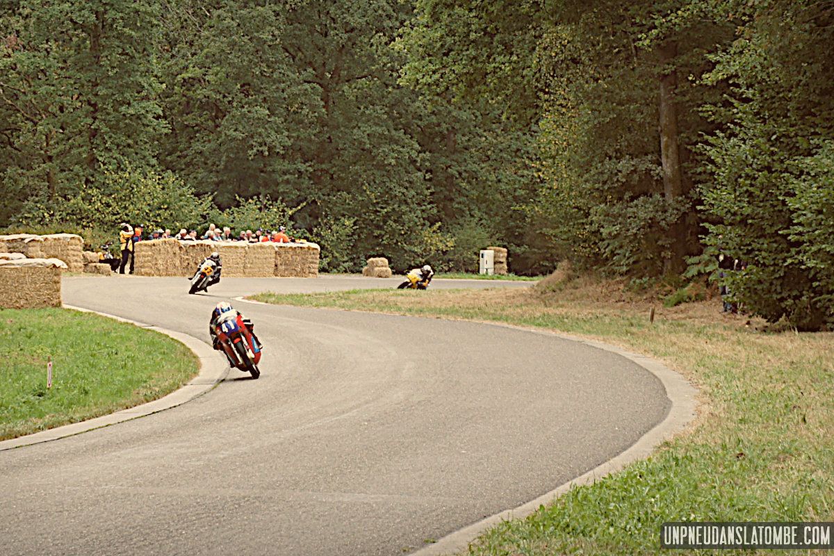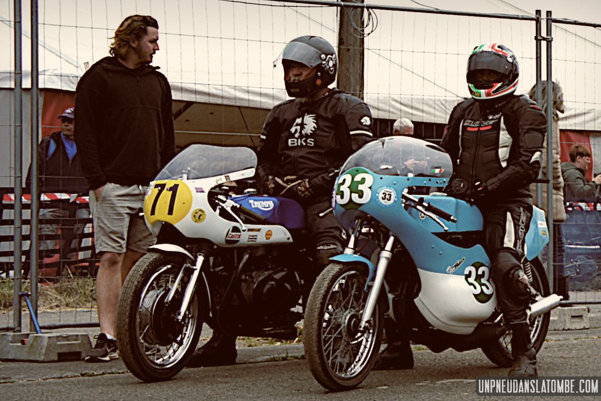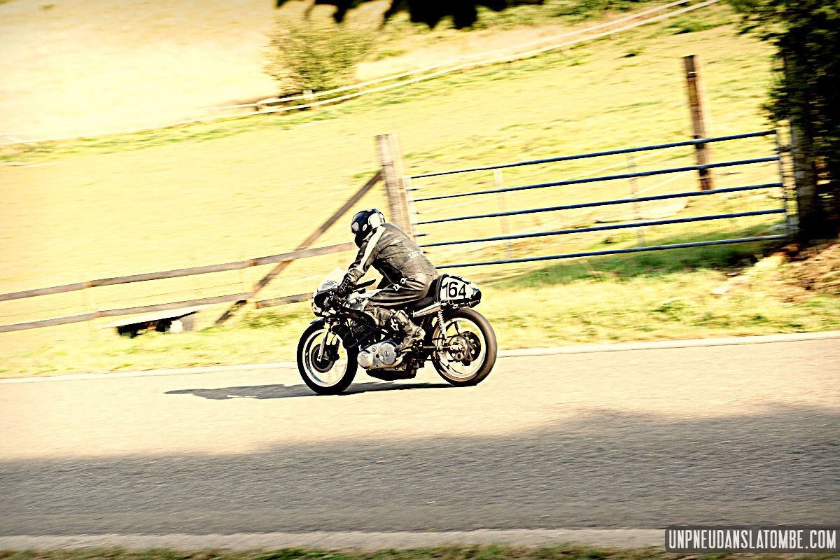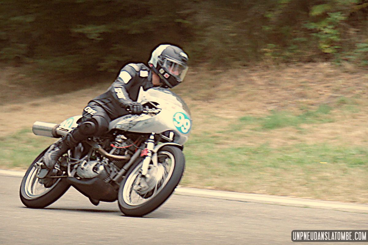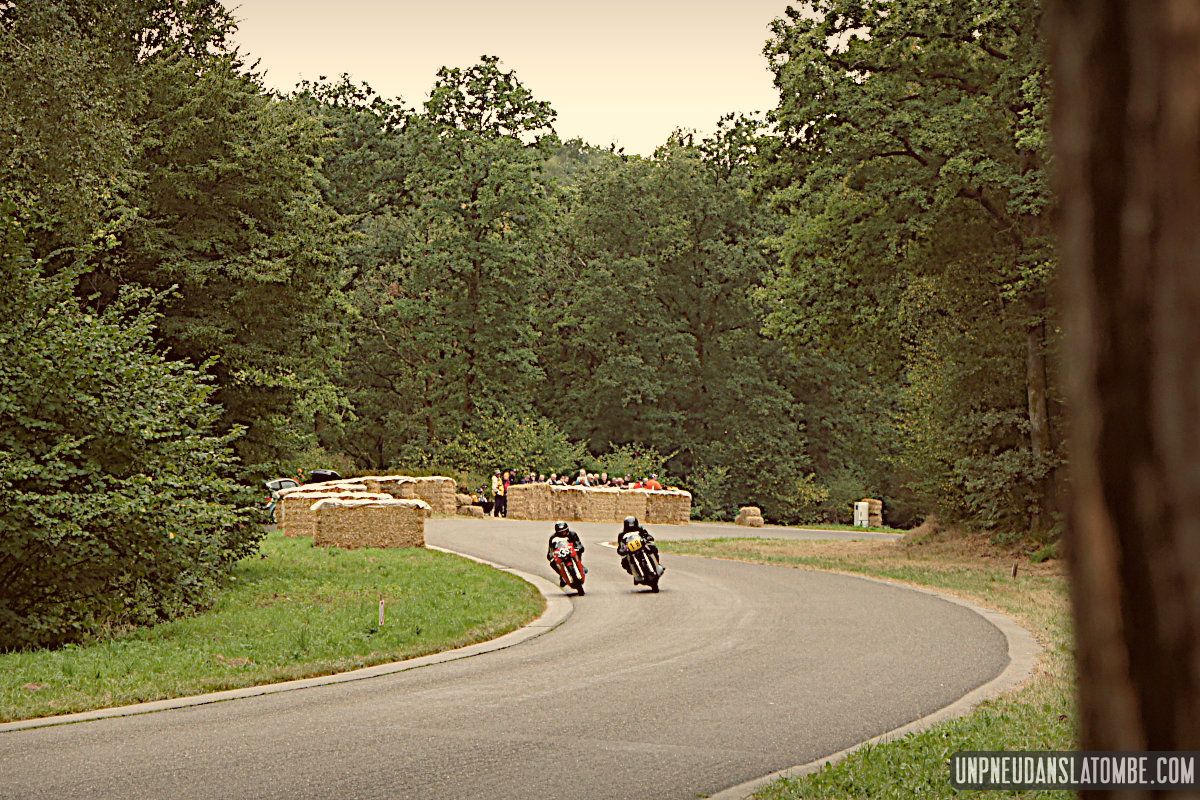 Voilà une paire de saisons que je n’avais pas pu assister à ce formidable spectacle : une petite route de campagne fermée trois jours durant, et des pilotes venus d’un peu partout pour en profiter, aux guidons de leurs pièges plus ou moins rétros, et pour certains pas mal affûtés. C’est que les lascars en tête ne sont pas là pour se promener ! Ici point de démo, il est bien question de bagarre. D’où l’analogie avec le fameux Tourist Trophy.