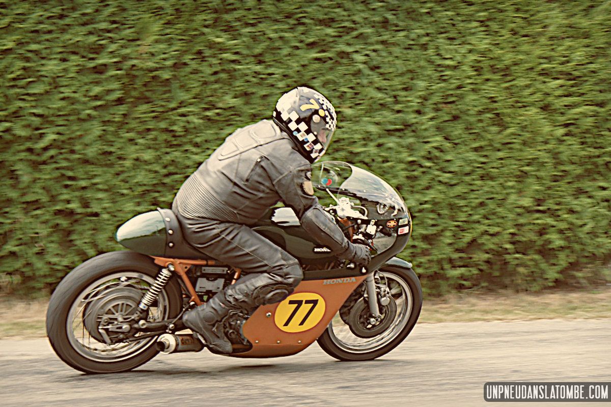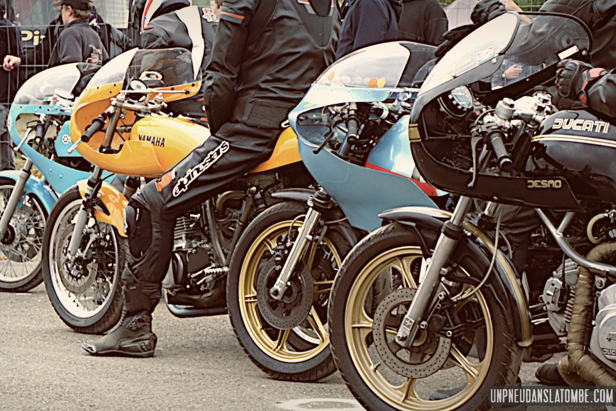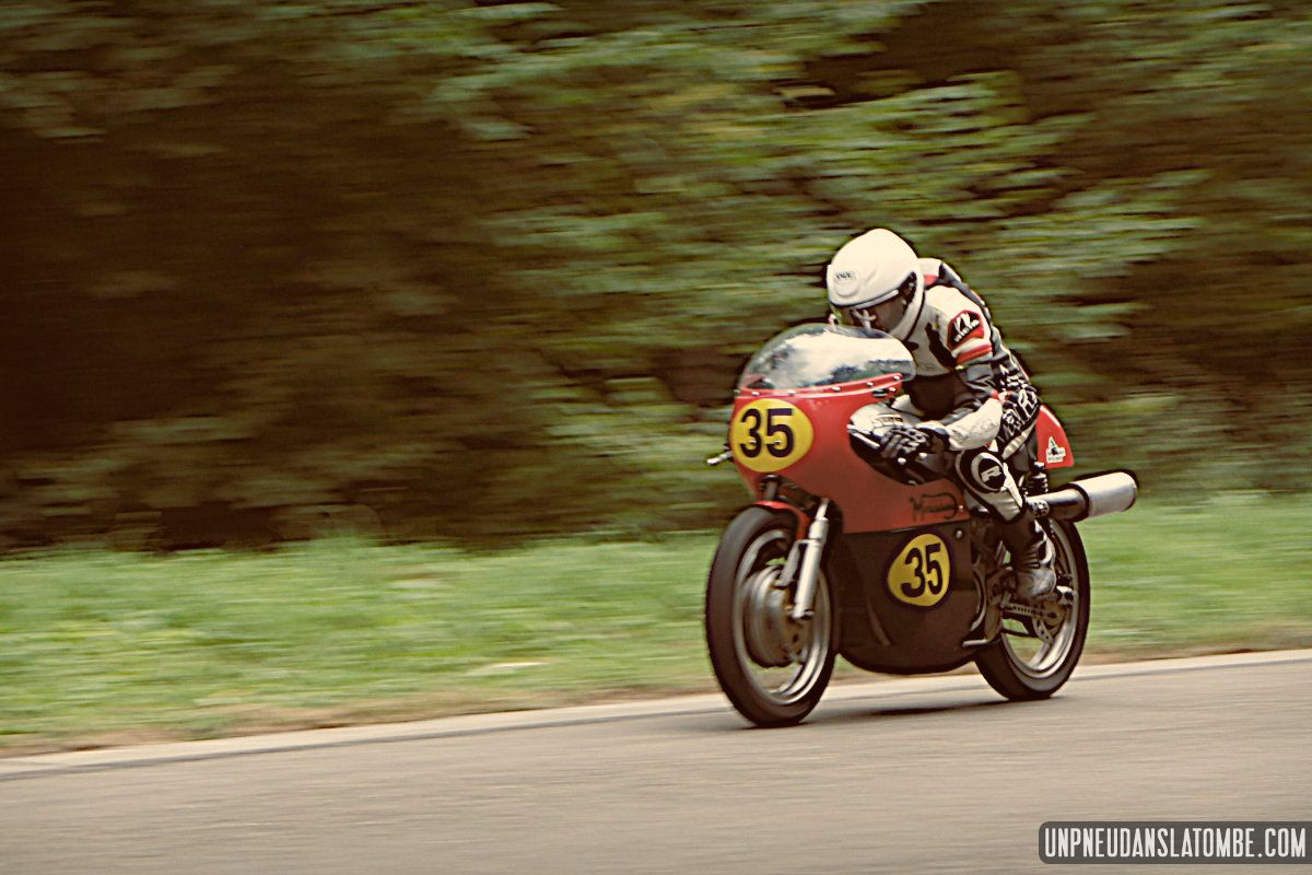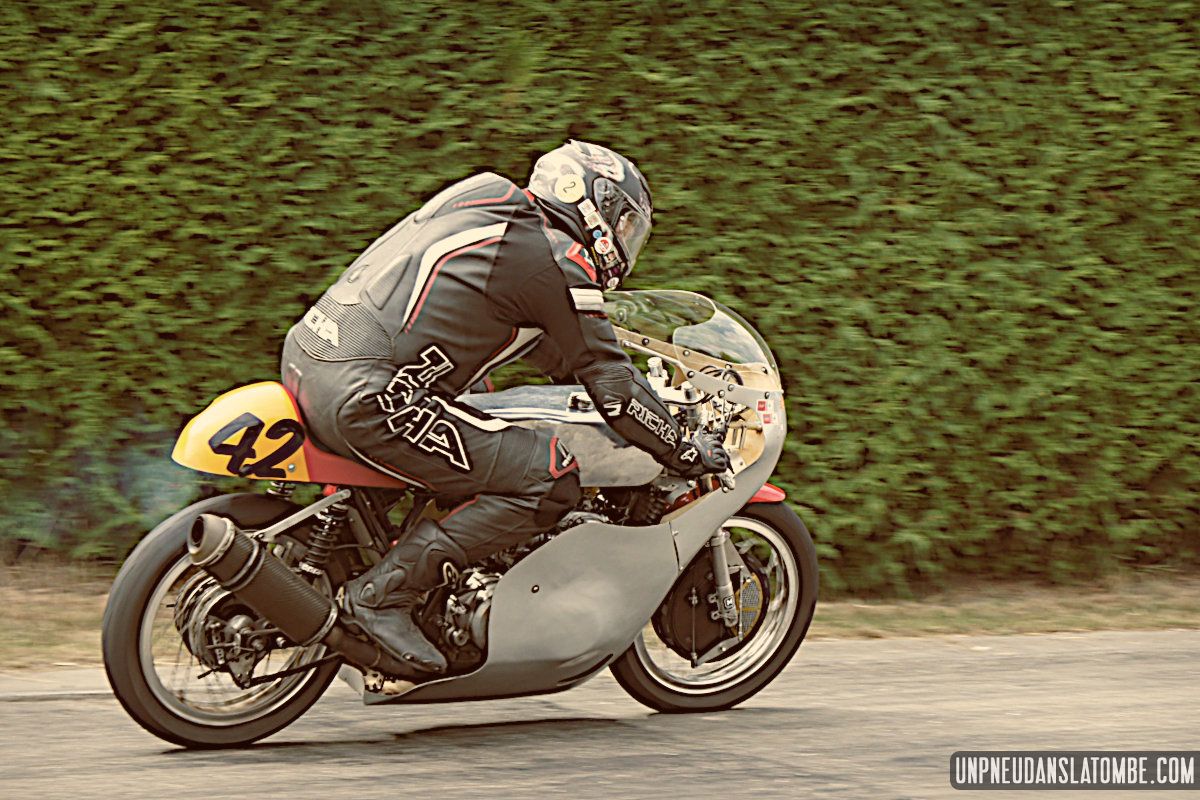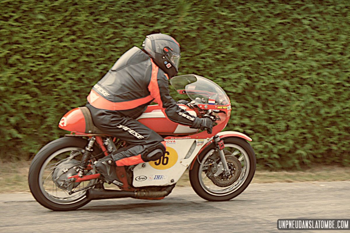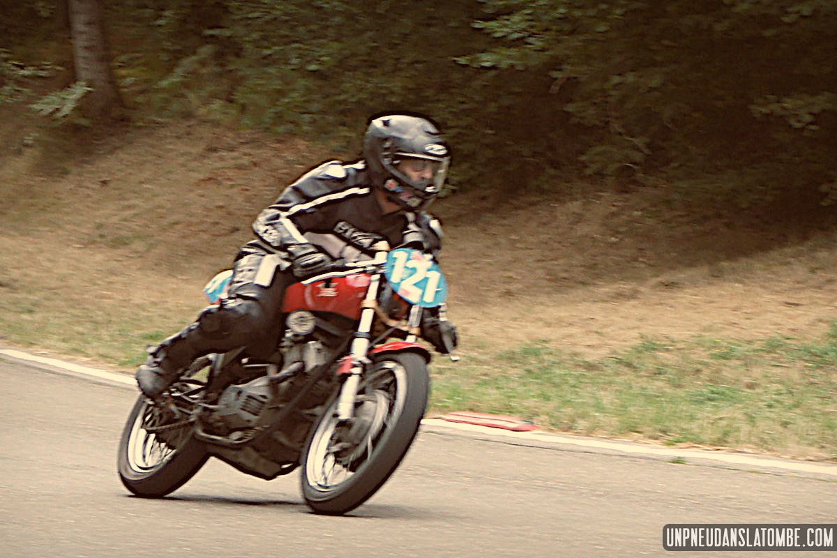 Voilà une paire de saisons que je n’avais pas pu assister à ce formidable spectacle : une petite route de campagne fermée trois jours durant, et des pilotes venus d’un peu partout pour en profiter, aux guidons de leurs pièges plus ou moins rétros, et pour certains pas mal affûtés. C’est que les lascars en tête ne sont pas là pour se promener ! Ici point de démo, il est bien question de bagarre. D’où l’analogie avec le fameux Tourist Trophy.