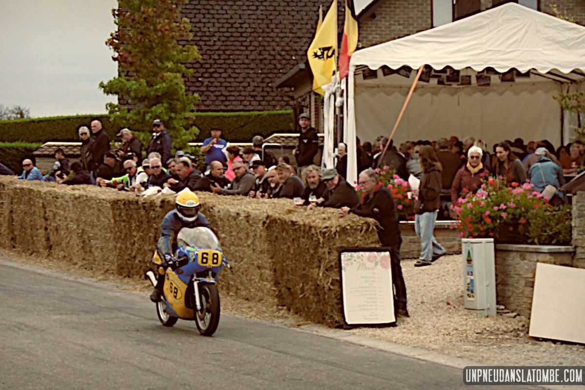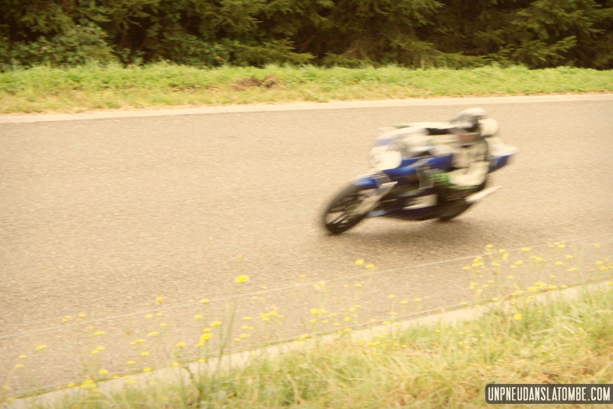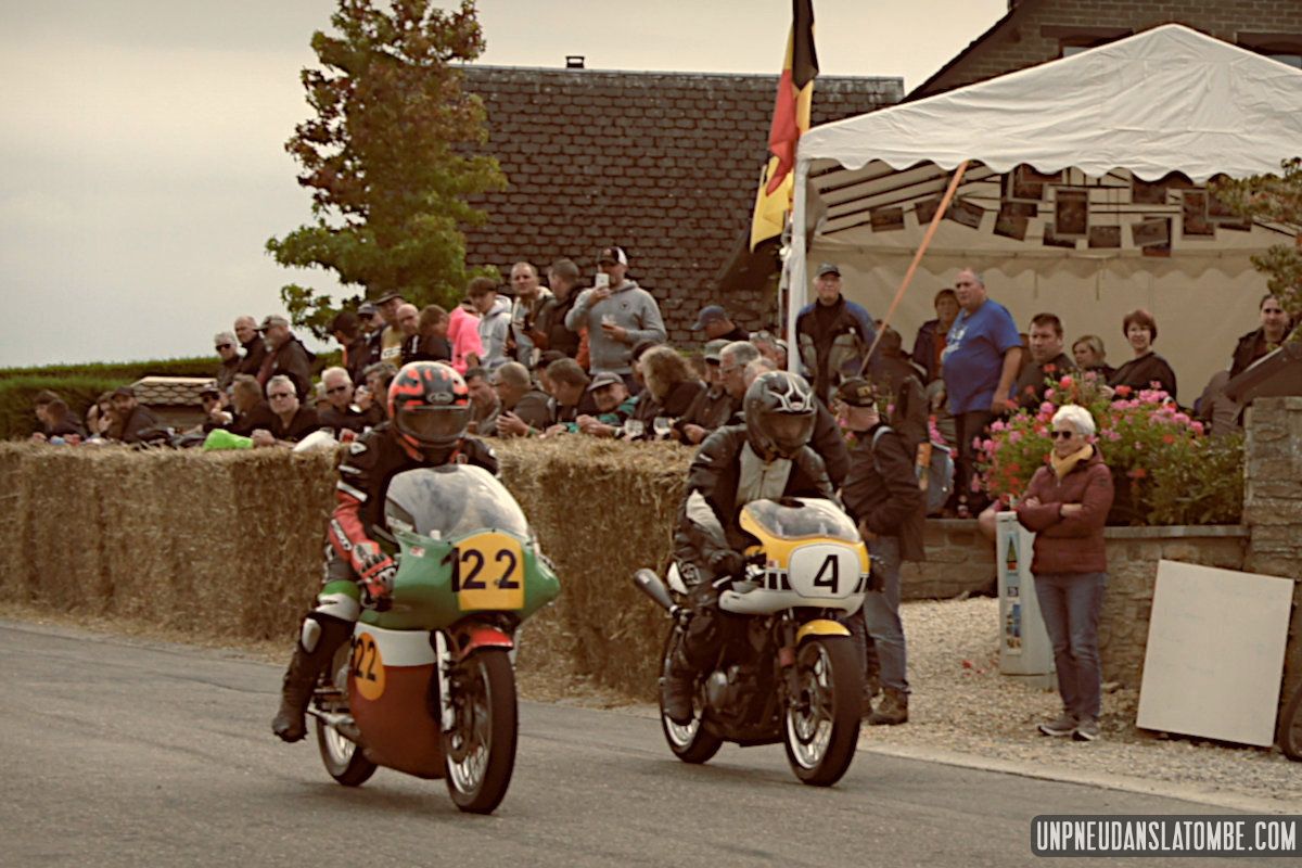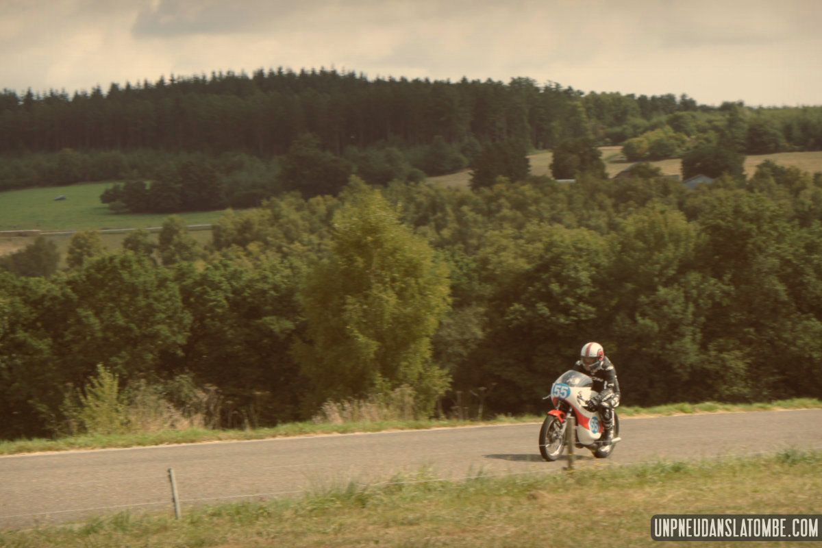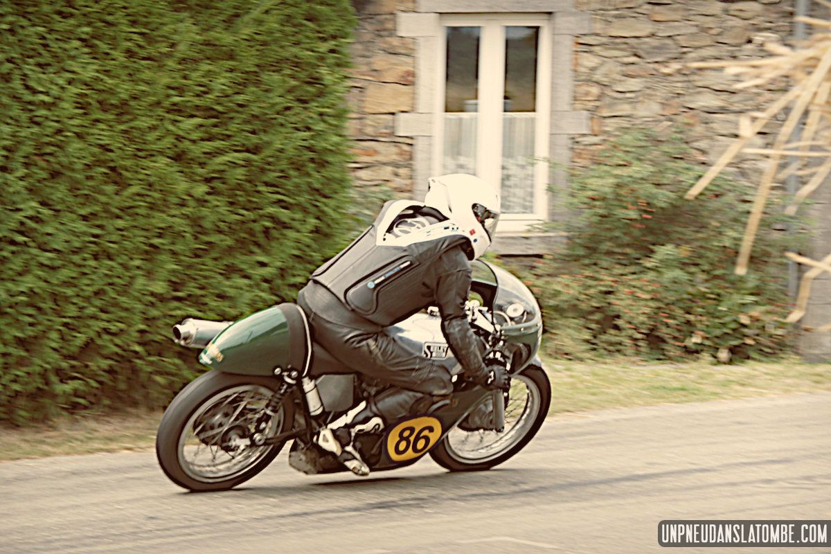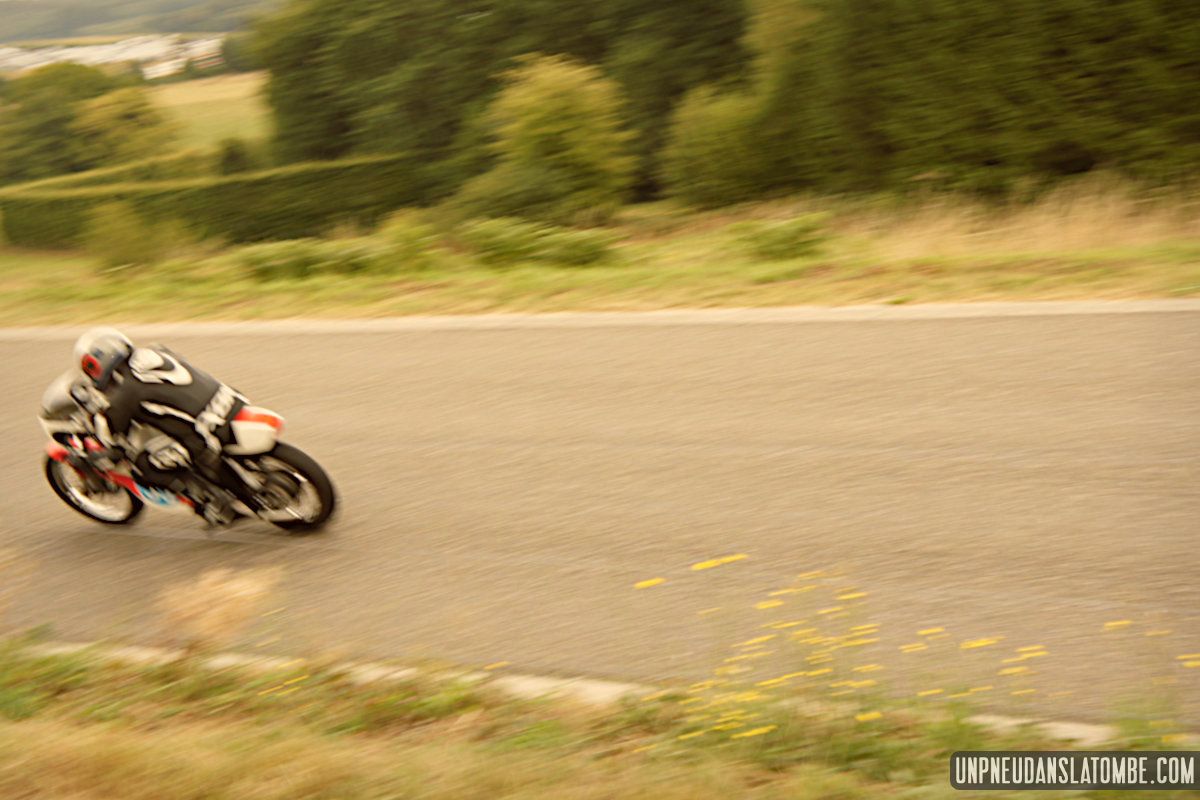 Pour un amateur comme votre serviteur, aux compétences et au matériel limités… Le Belgian Classic TT (dont l’amusante description mérite toujours d’être lue) n’est pas un évènement facile à immortaliser. J’ai dû prendre quelques trois-cents clichés, à Gedinne cette année. Néanmoins, plus des trois quarts de ces images ont piteusement fini à la poubelle. Et tout ce qui reste méritait-il vraiment d’être sauvé ? Quoi qu’il en soit, nous n’aurons pas boudé notre plaisir, sur place. Surtout moi !