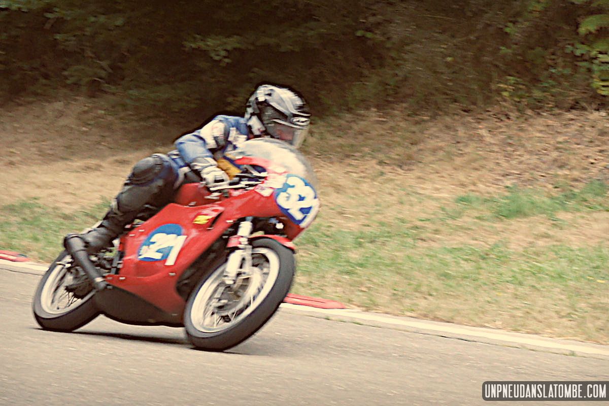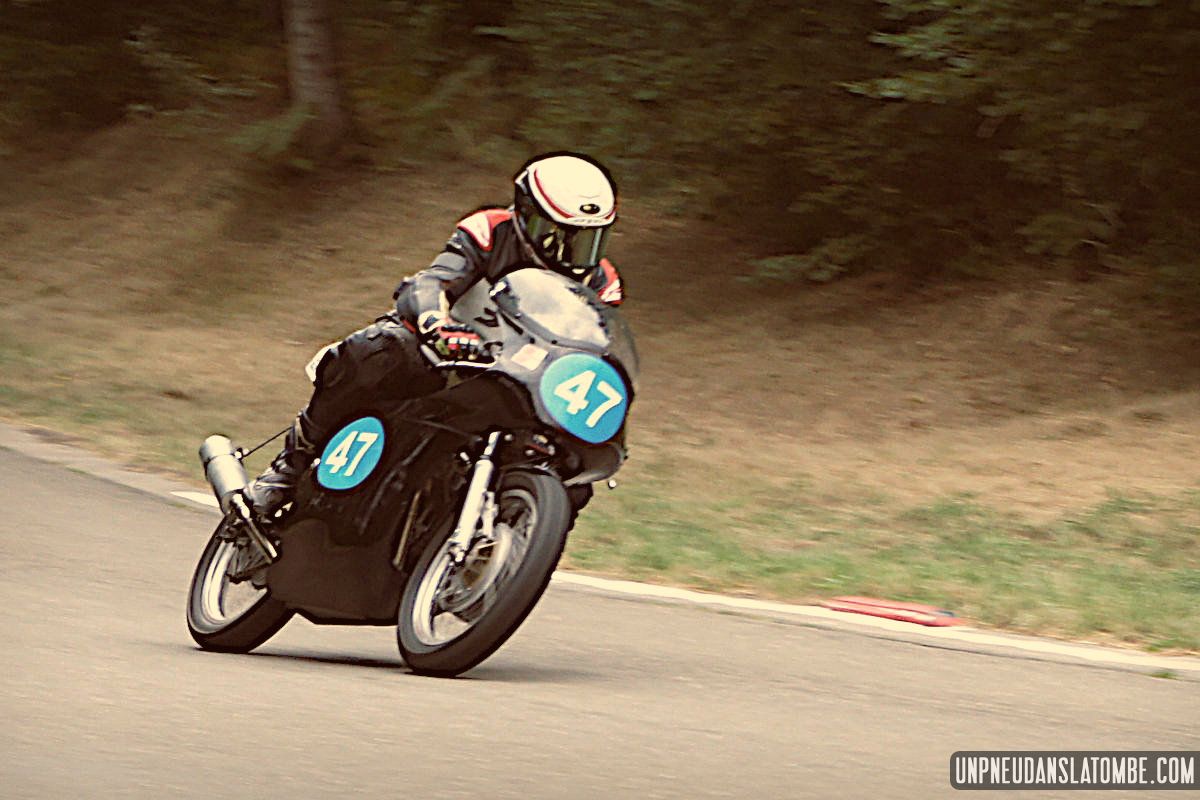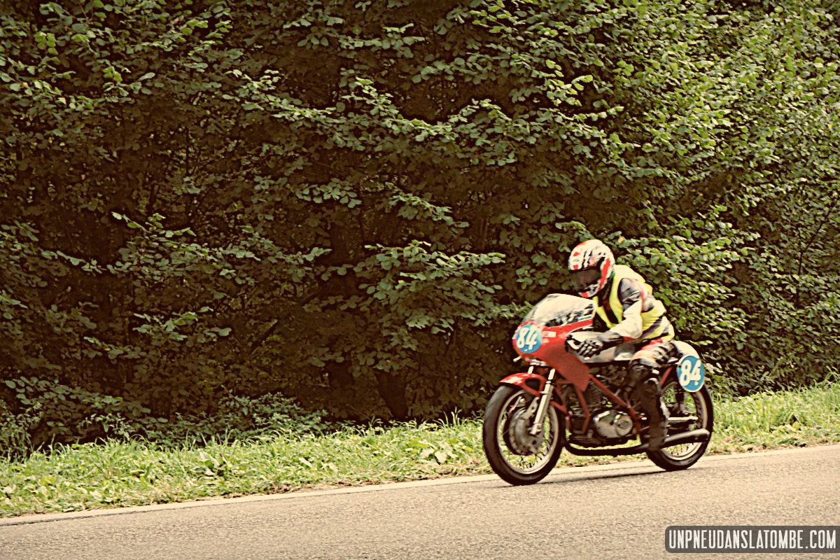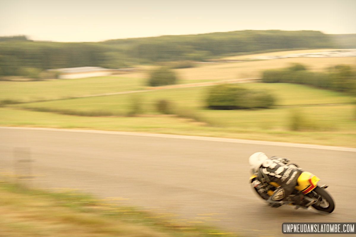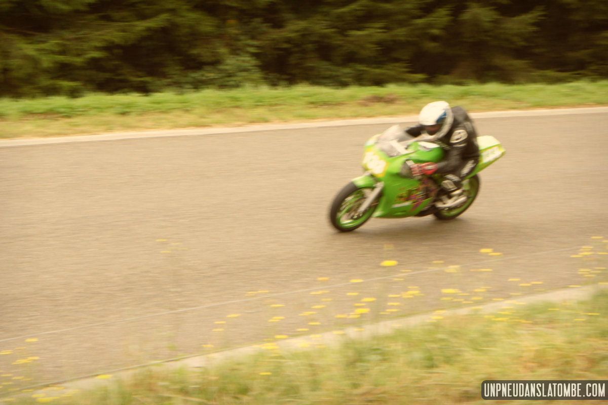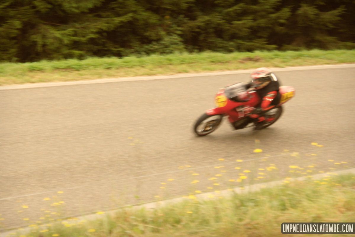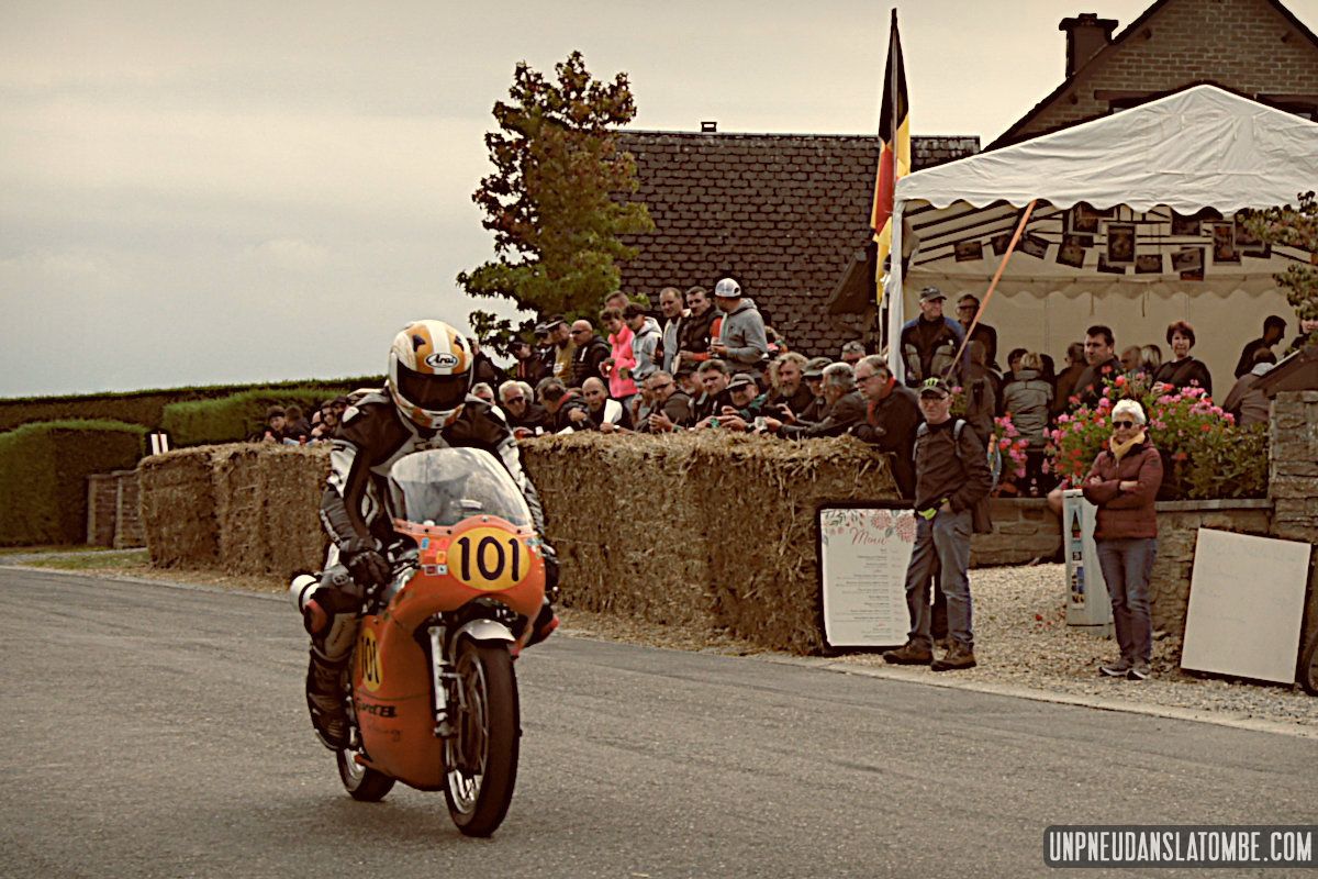 Pour un amateur comme votre serviteur, aux compétences et au matériel limités… Le Belgian Classic TT (dont l’amusante description mérite toujours d’être lue) n’est pas un évènement facile à immortaliser. J’ai dû prendre quelques trois-cents clichés, à Gedinne cette année. Néanmoins, plus des trois quarts de ces images ont piteusement fini à la poubelle. Et tout ce qui reste méritait-il vraiment d’être sauvé ? Quoi qu’il en soit, nous n’aurons pas boudé notre plaisir, sur place. Surtout moi !