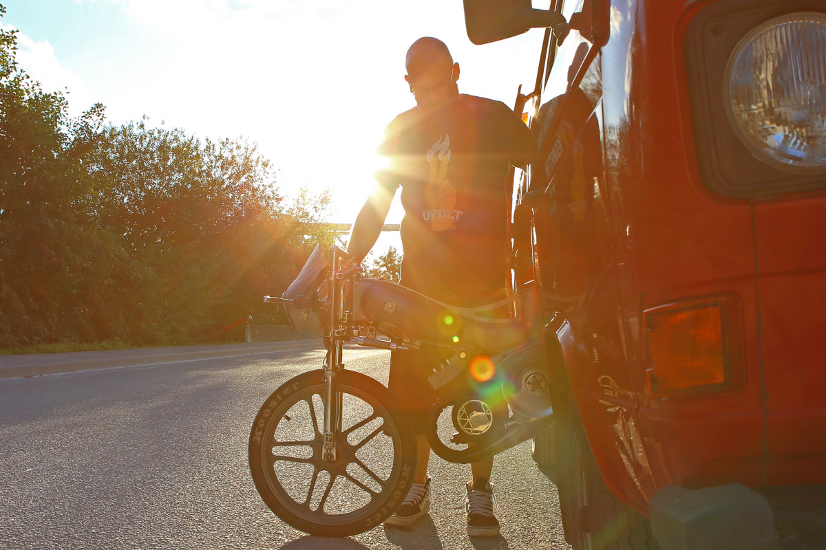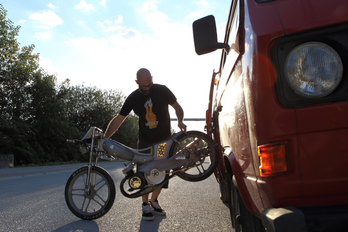 Quand j’aperçois une mob, a fortiori des années 60, soyons franc… La première chose qui me vient à l’esprit n’est certainement pas de l’enfourcher pour jouer (façon Rollie Free) les limandes sur un lac salé. Aussi faut-il croire que le cerveau de notre camarade Cyril Cheval est câblé un peu différemment du mien. Car lui n’a pas hésité à choisir une Motoconfort AU65, pour se tailler sur mesure un piège évoquant certaines machines atteignant des vitesses folles à Bonneville. Un engin un peu zinzin, donc, mais sans prétentions inconvenantes toutefois.