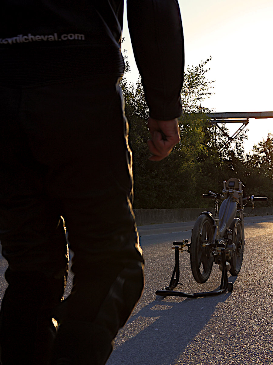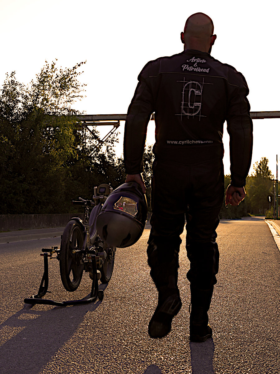 Dans ce troisième chapitre, Cyril nous présente son casque et sa combinaison personnalisés, avant d’enfourcher sa Motoconfort AU65 de land speed racing…