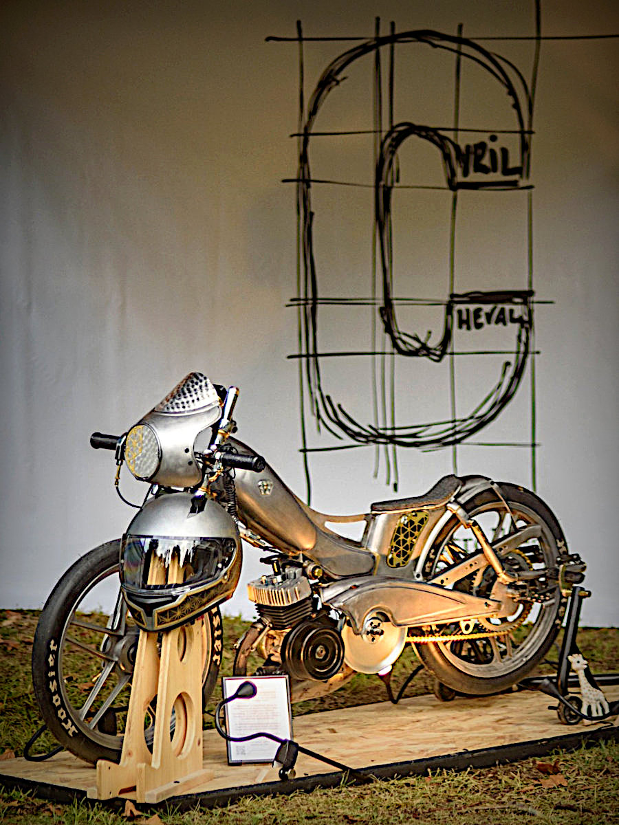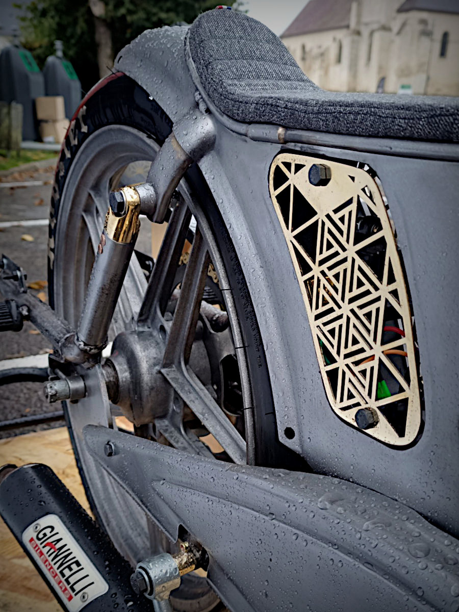 C’est que (faisceau électrique obligatoire mis à part), notre protagoniste se refuse à monter la moindre pièce non retouchée. Quand il n’est pas fabriqué sur mesure, chaque élément est personnalisé, embelli, rectifié, peint ou poli.