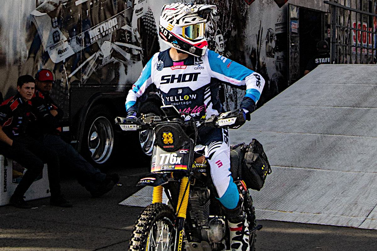 En 2025, un étrange couple s’est garé sur la scène centrale de la 58ème édition, pour se présenter au public. Venu de France, Greg Gilson a pris le départ dans l’impitoyable « Pro Moto Ironman class », dont les concurrents ont (en solo) moins de 36h00 pour couvrir quelques 1400 km. Et lui s’est engagé dans ce calvaire avec une modeste Honda XLS 125 de 1980 ! Dès lors il m’est apparu hautement nécessaire d’avoir une petite discussion avec l’individu, et de comprendre pourquoi il a choisi cette bécane pour un périple aussi incroyable…