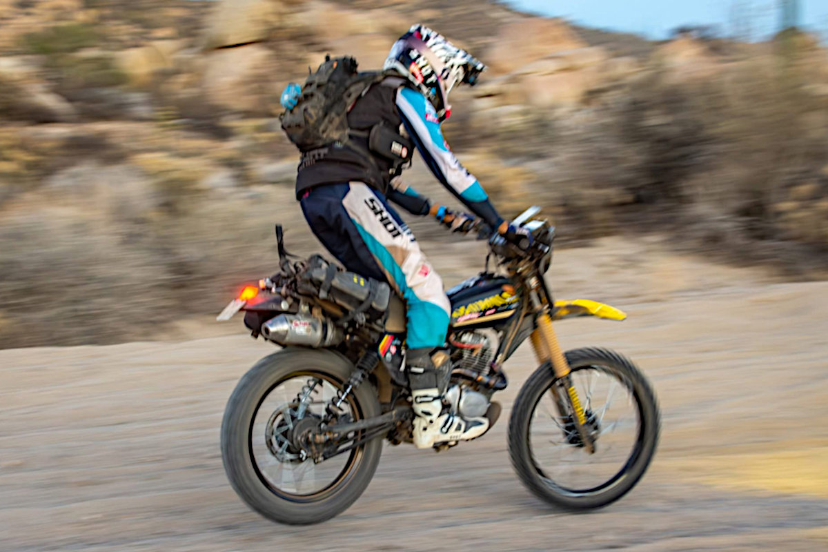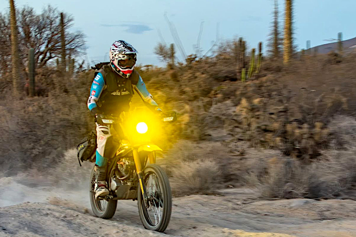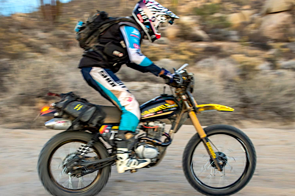 Qui a eu cette idée folle, un jour… De se lancer avec une Honda XLS 125, à travers les cactacées des pistes apocalyptiques de l’harassante Baja 1000 ? Greg Gilson !