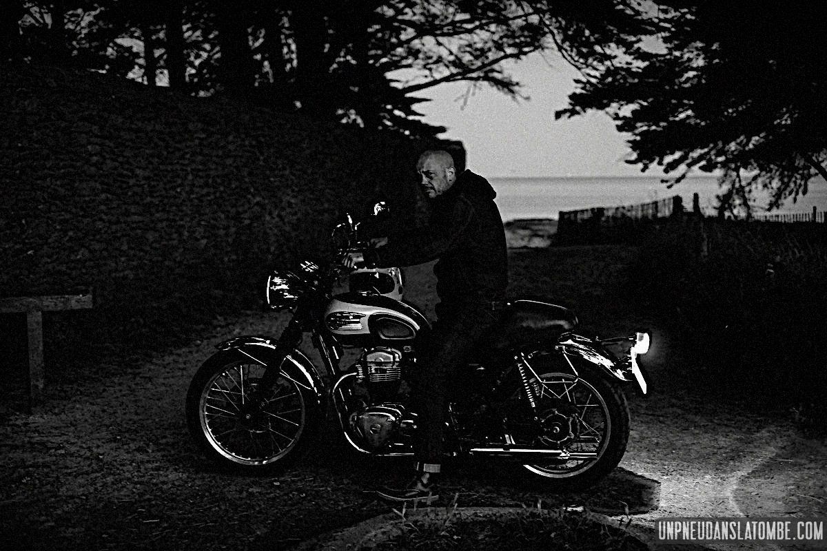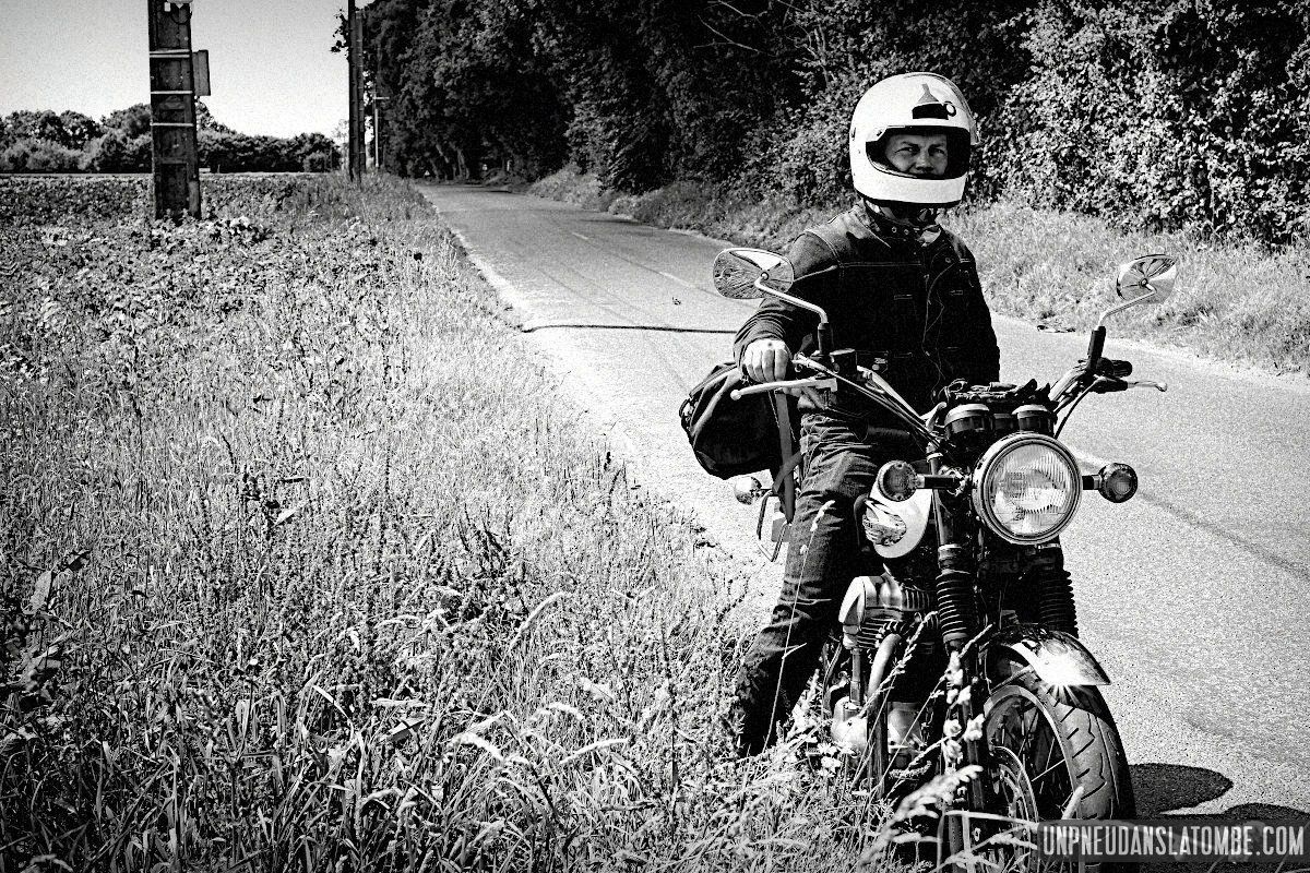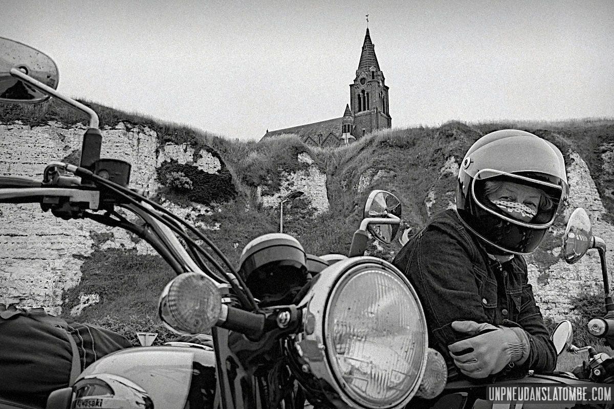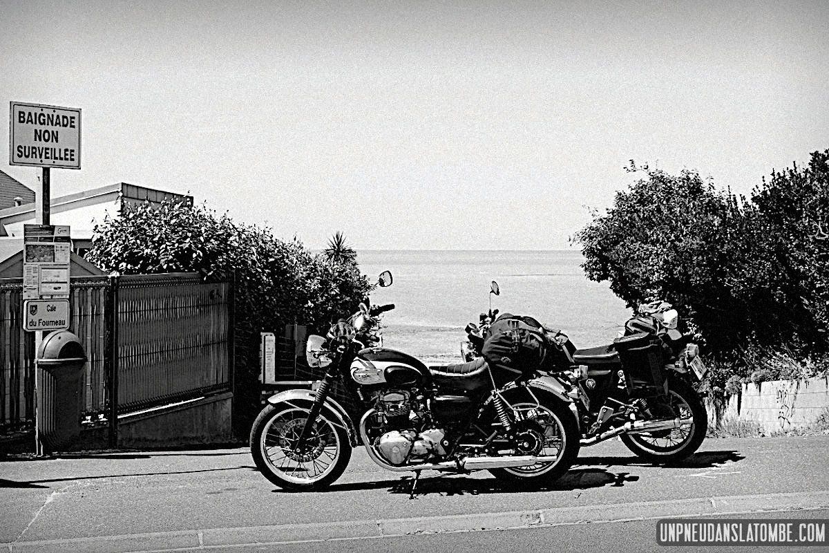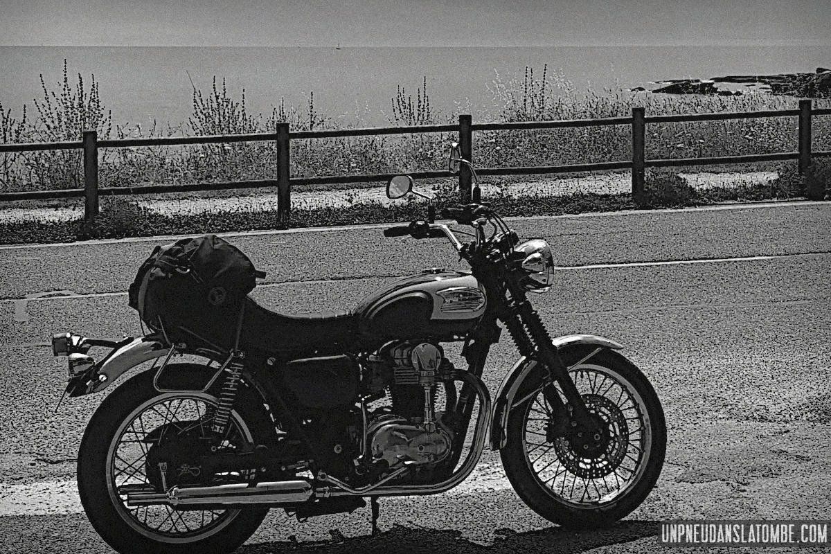 Béné a pris moins de photos, cette année. Cependant n’allez pas imaginer qu’elle ait perdu le goût, non. Elle en a simplement moins eu l’occasion. Cela peut paraître paradoxal, mais c’est lié au fait que celui-ci de nos road trips en tête à tête fut à ce jour le plus long. Trop ? Peut-être. C’est que Brest n’est pas la porte à côté ! Et que cette fois encore nous avons pas mal louvoyé, à califourchon sur nos machines respectives… Elle au guidon de sa Royal Enfield 650 Continental GT, et moi de ma Kawasaki W650.