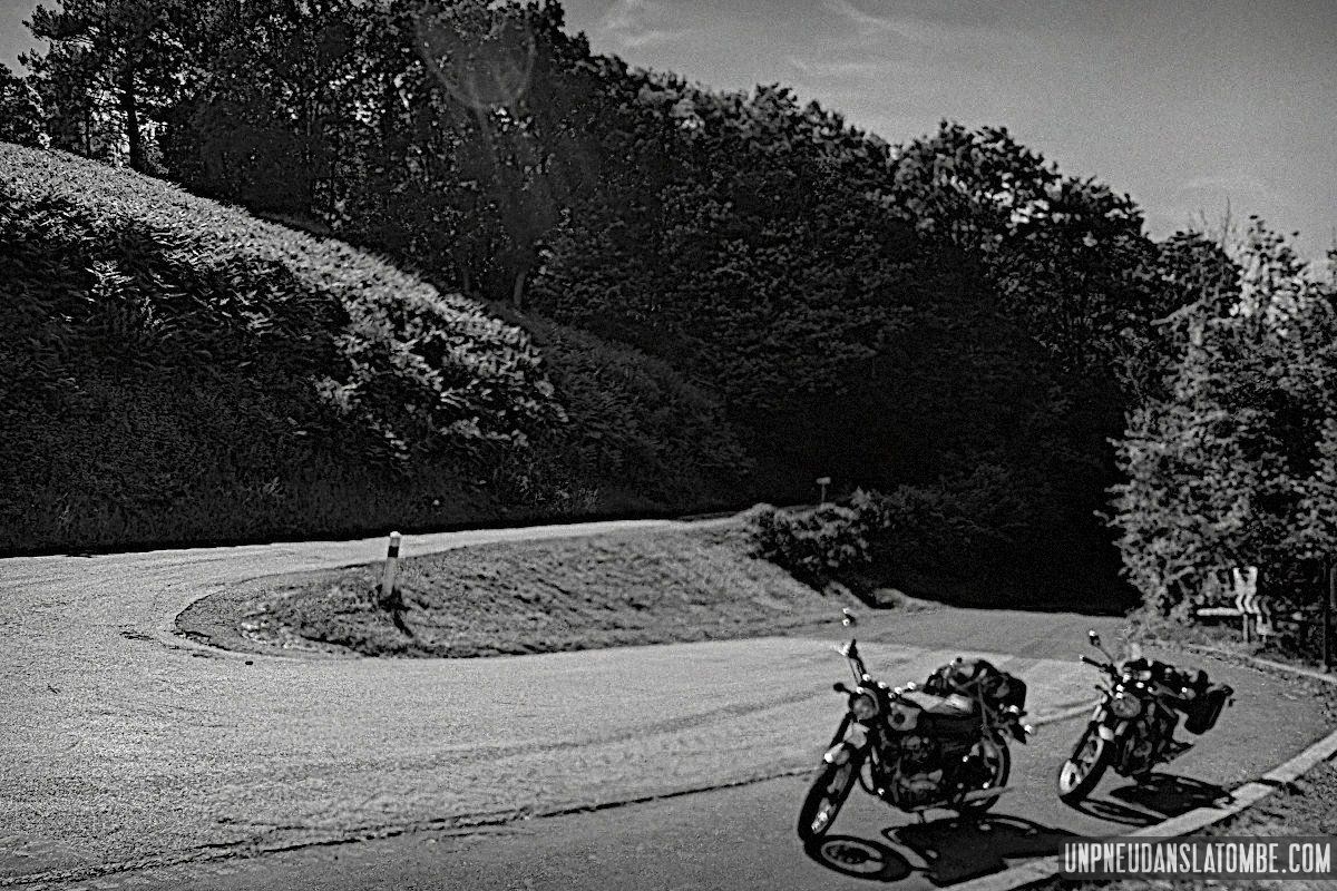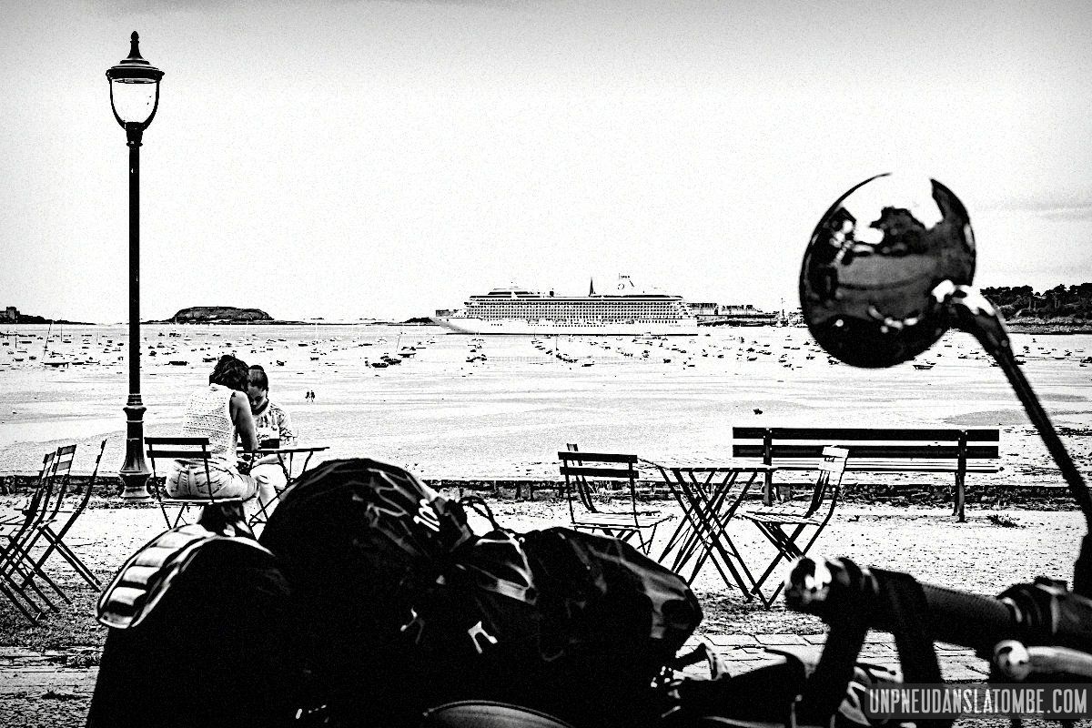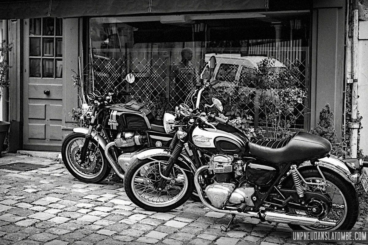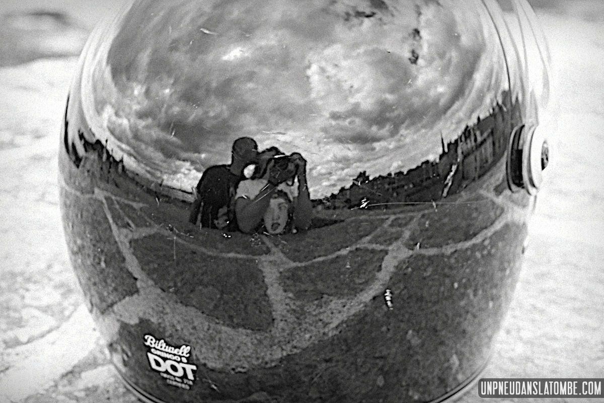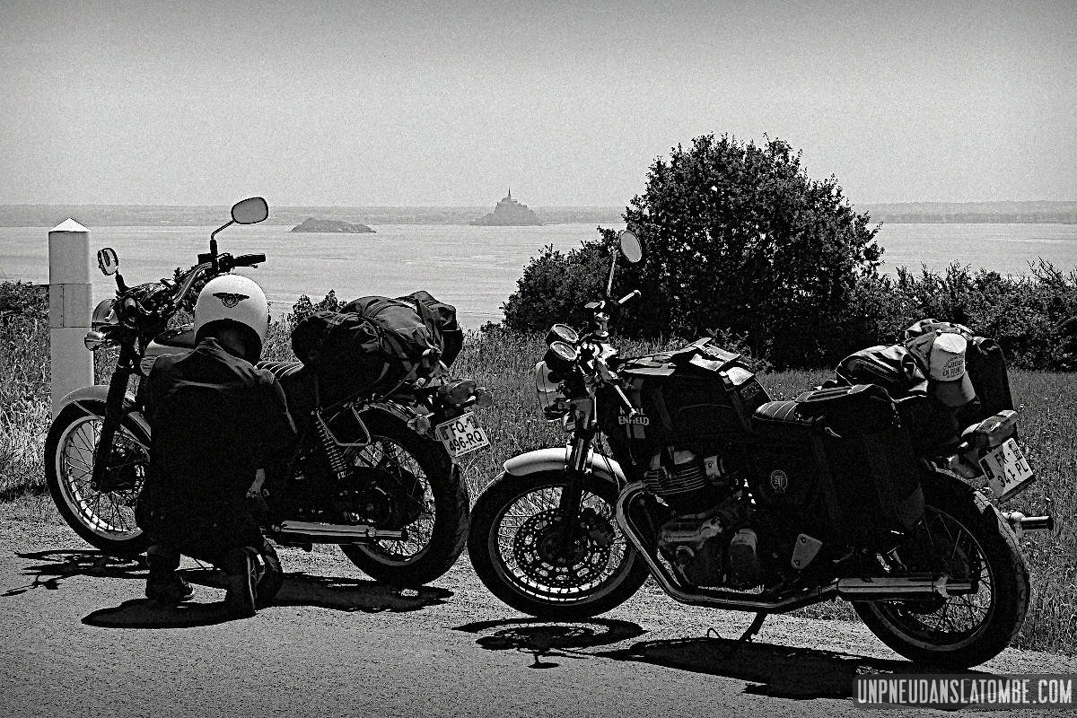 Béné a pris moins de photos, cette année. Cependant n’allez pas imaginer qu’elle ait perdu le goût, non. Elle en a simplement moins eu l’occasion. Cela peut paraître paradoxal, mais c’est lié au fait que celui-ci de nos road trips en tête à tête fut à ce jour le plus long. Trop ? Peut-être. C’est que Brest n’est pas la porte à côté ! Et que cette fois encore nous avons pas mal louvoyé, à califourchon sur nos machines respectives… Elle au guidon de sa Royal Enfield 650 Continental GT, et moi de ma Kawasaki W650.
