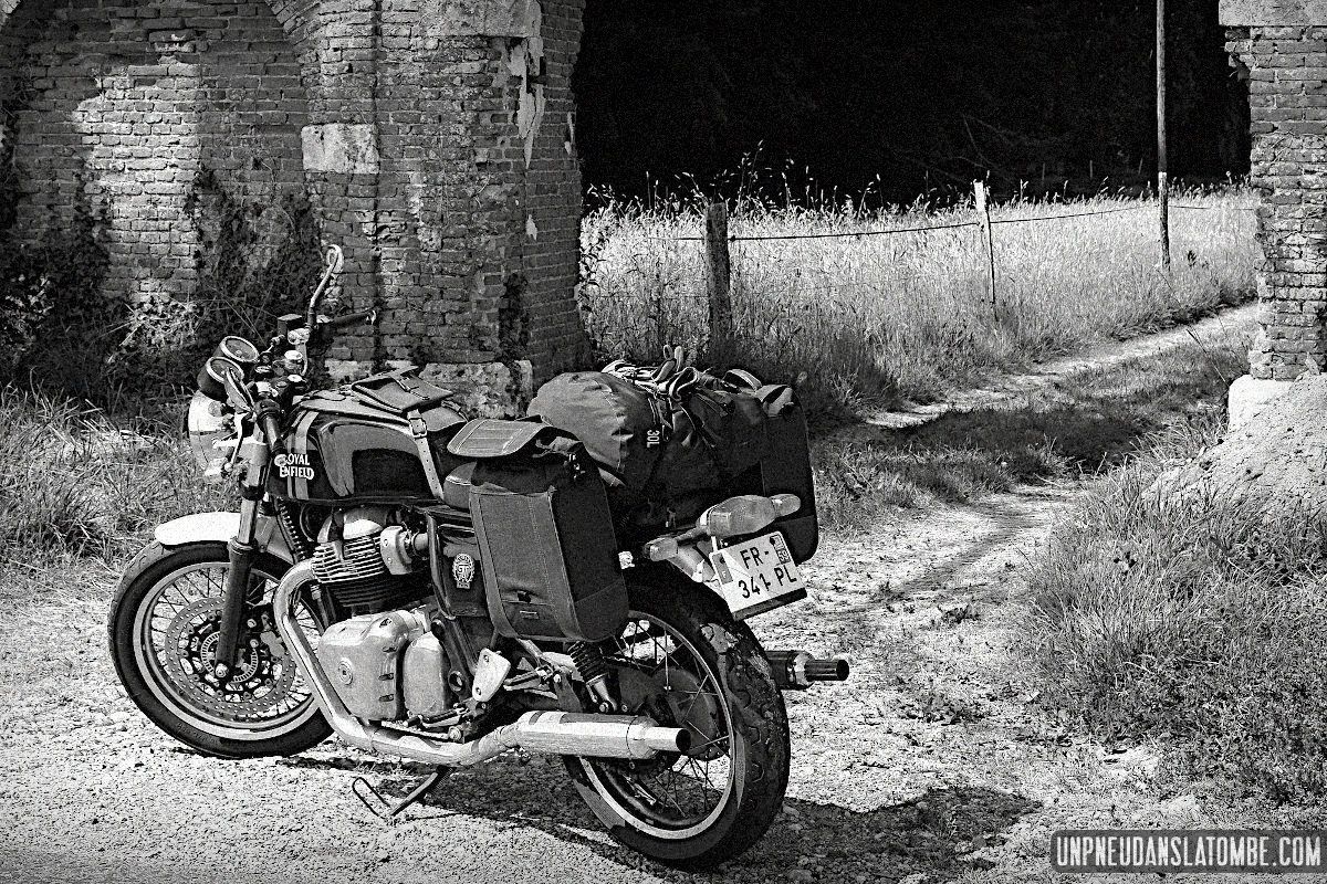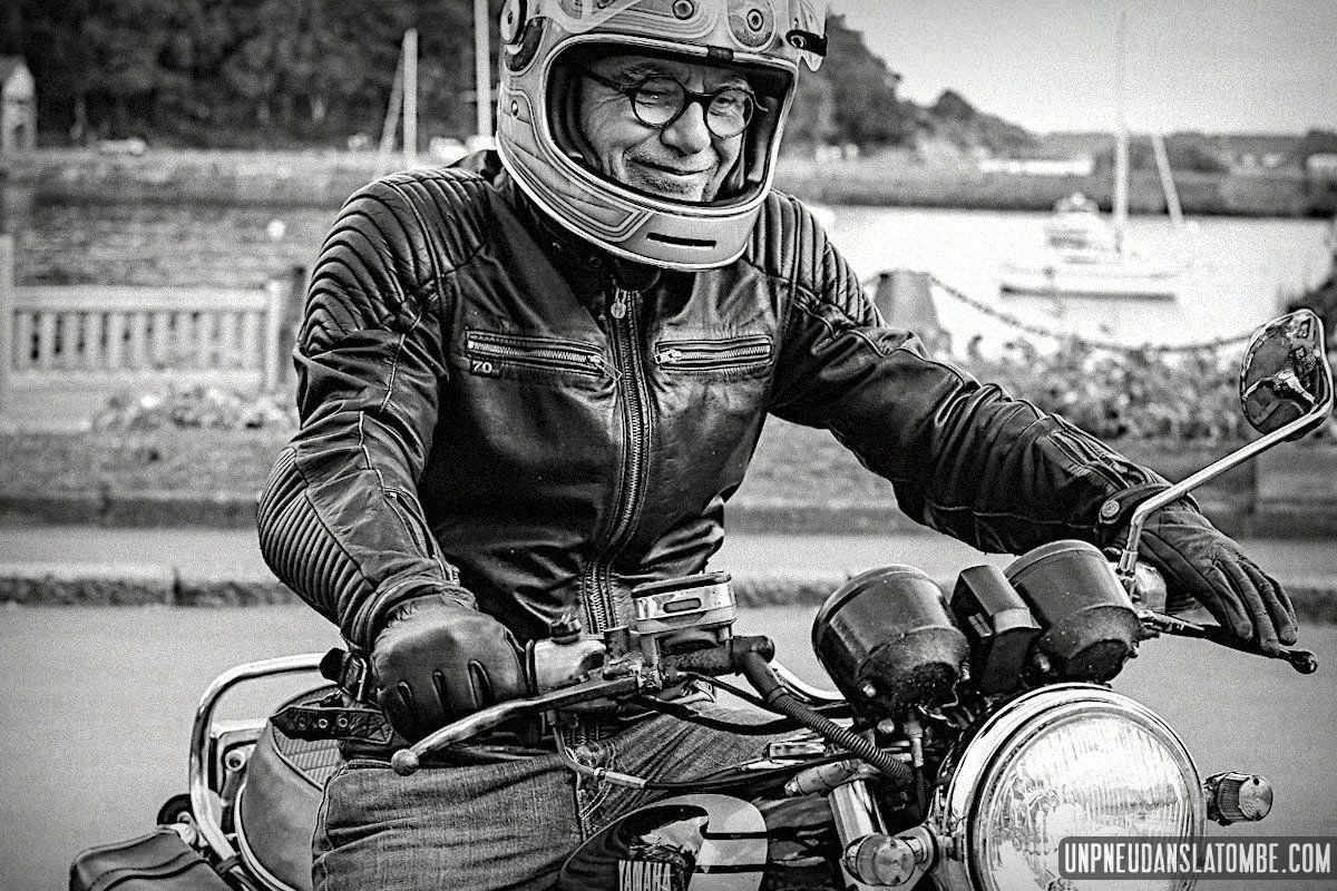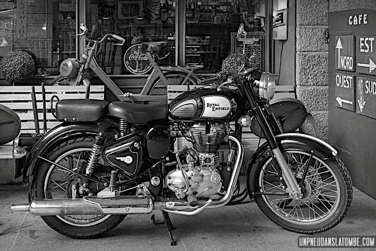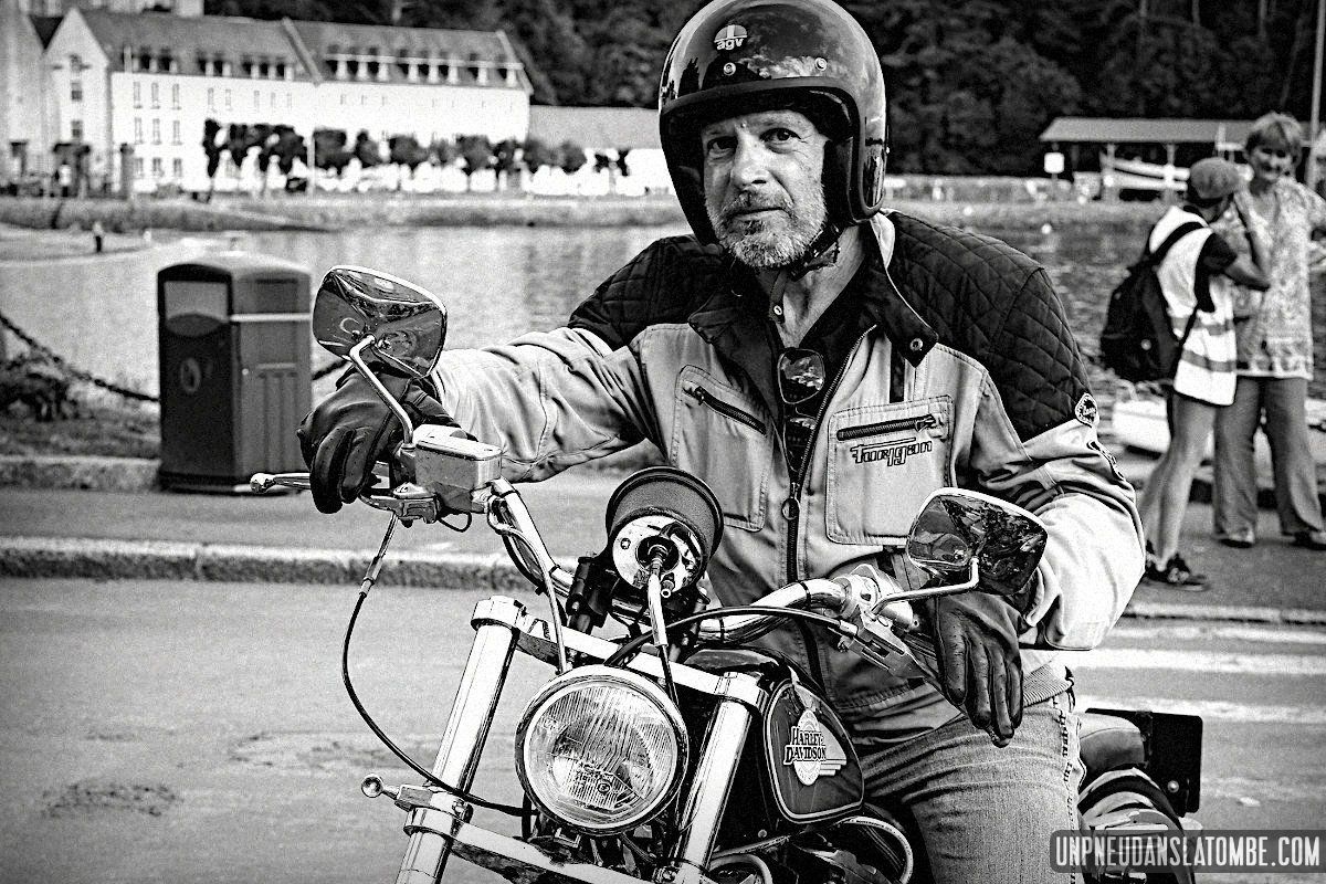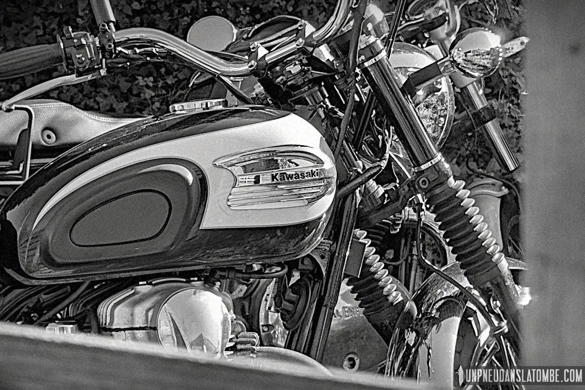 Béné a pris moins de photos, cette année. Cependant n’allez pas imaginer qu’elle ait perdu le goût, non. Elle en a simplement moins eu l’occasion. Cela peut paraître paradoxal, mais c’est lié au fait que celui-ci de nos road trips en tête à tête fut à ce jour le plus long. Trop ? Peut-être. C’est que Brest n’est pas la porte à côté ! Et que cette fois encore nous avons pas mal louvoyé, à califourchon sur nos machines respectives… Elle au guidon de sa Royal Enfield 650 Continental GT, et moi de ma Kawasaki W650.