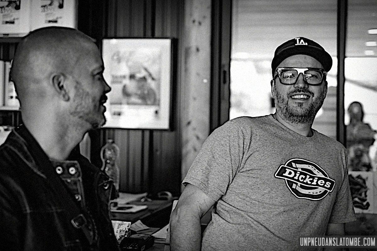 Non sans faire quelques détours évidemment. A commencer par un arrêt à Quimperlé pour – enfin – rencontrer Manu, et visiter l’actuel local de "Sur les chapeaux de roues" (photos à venir…). Avant de rejoindre, via Pont-Aven (« Oh nom de Dieu de bordel de merde ! »), et sur les conseils de notre camarade, la remarquable route côtière qui conduit à la pointe de Trévignon. Sable fin, surfeurs bronzés, soleil ardent… Dans ce contexte, l’endroit aurait presque de faux airs de Californie.