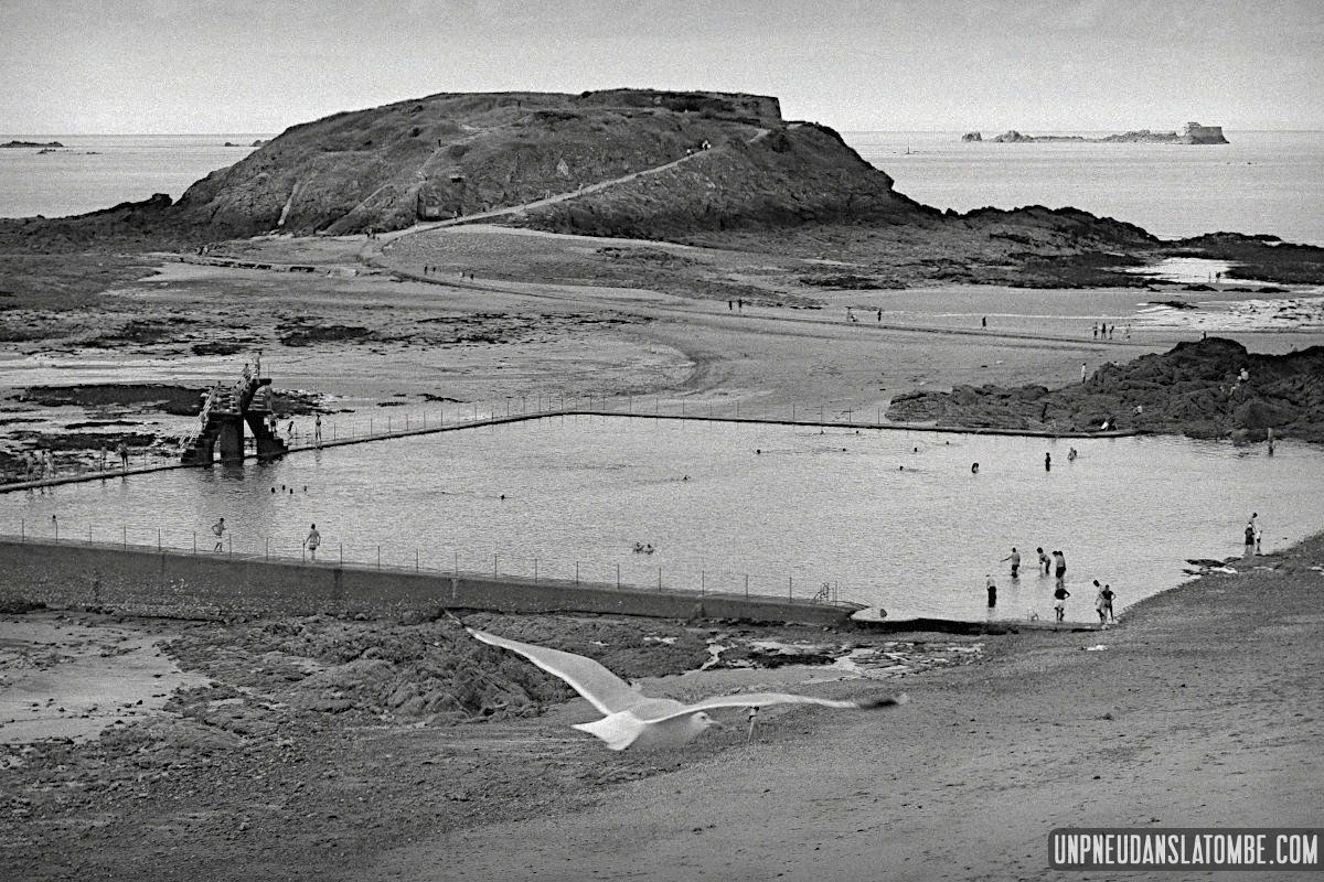 Pour rallier la glorieuse cité corsaire de Saint-Malo. Et puisque l’on peut se permettre (sans trop faire les Malouins…) un petit crochet, nous choisissons de faire du longe-côte par la D788, route reliant Trébeurden à Perros-Guirec. Malgré la bruine qui nous conduit à enfiler nos combis (bah alors ; il était pas censé ne pleuvoir que sur les cons !?), la lumière du matin ne manque pas d’embellir cet aperçu de la Côte de Granit Rose, paysage assez unique en son genre.