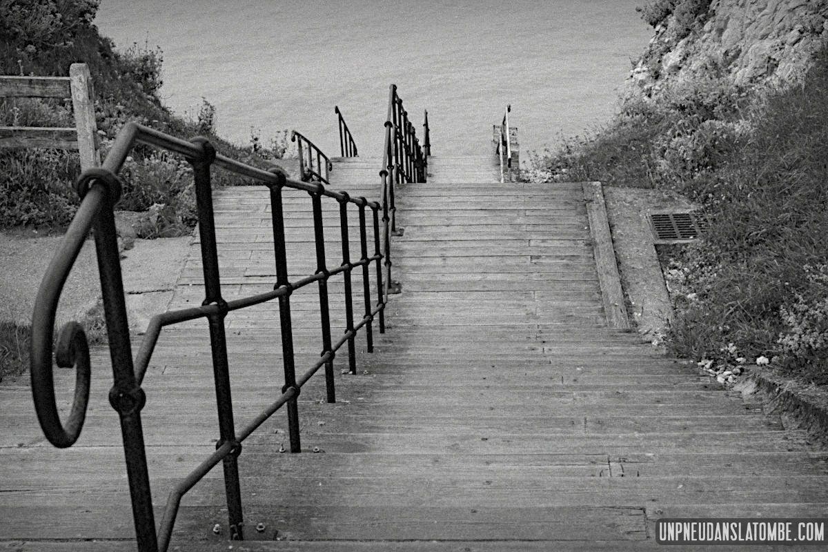 Afin d’atteindre une autre fameuse cité, celle des peintres. Nous étions déjà venus à Honfleur (à l’occasion de Normandy Beach Race III ?), mais n’avions rien contre une seconde visite bien entendu. En revanche, nous n’avions encore jamais admiré la pointe du Grouin, ni traversé la Suisse normande. C’est choses faites maintenant. Arrivés à destination, nous choisissons de finir la soirée dans un bar à vin à l’écart du port, ledit vieux bassin attirant la foule comme un aimant.